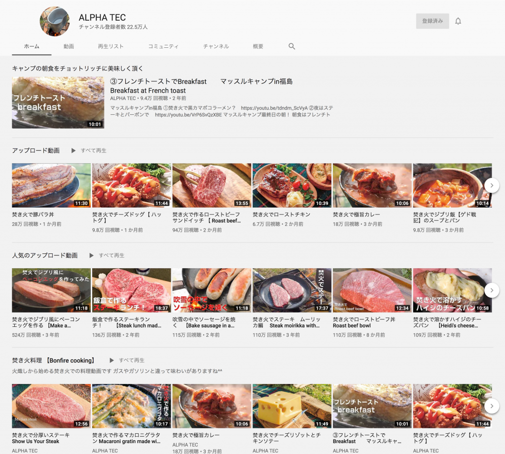 また、キャンプ系。そしてまた料理系。(私がチャンネル登録している約7割のチャンネルが料理系)